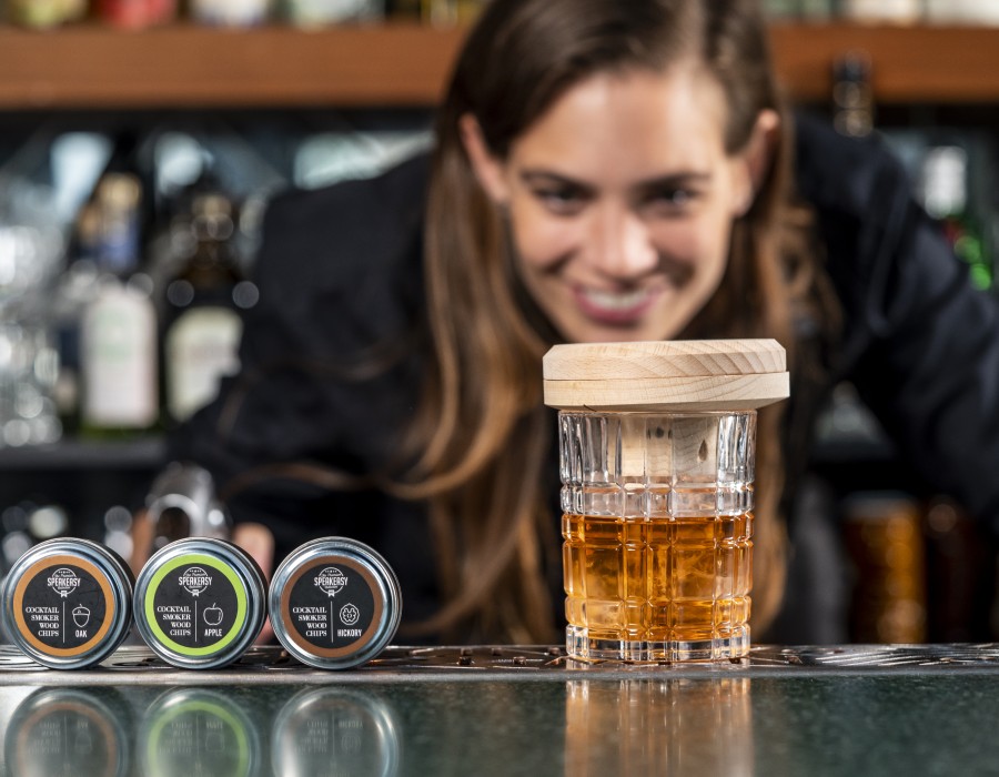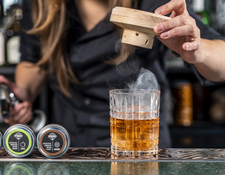 Kokteiliklaasi suitsutaja puidust kogus