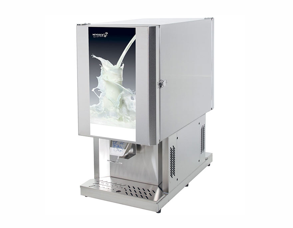 piima pakend paigutatakse piimajahuti sisse. Piim doseeritakse ventiilile vajutades.